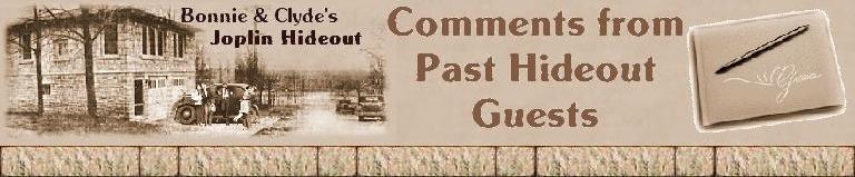 "Rick and I feel so fortunate we had the opportunity to stay in such a wonderful historic site. Having the apartment redone to resemble the 1930s was a real plus. Sleeping in the same room Bonnie & Clyde slept in will be a memory that will last a lifetime. We are looking forward to staying here again in the near future."